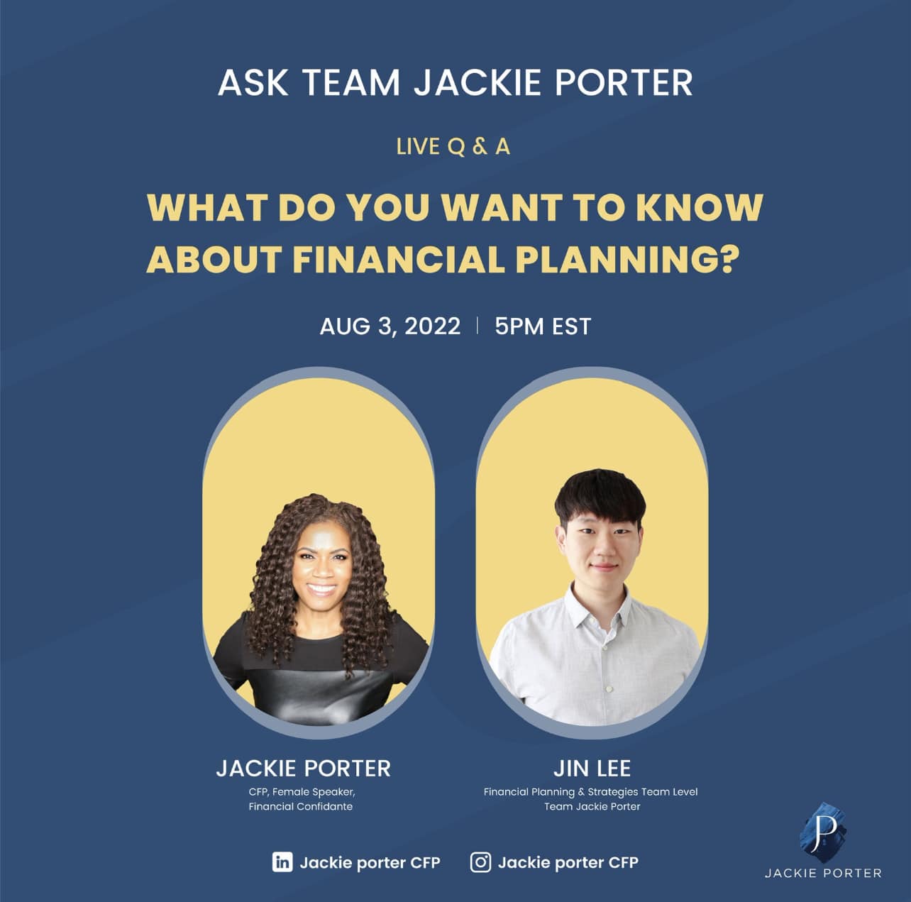 Published August 7, 2022 at 1284 × 1271 in Ask Team Jackie Porter Series – Financial Planning with Jin Lee