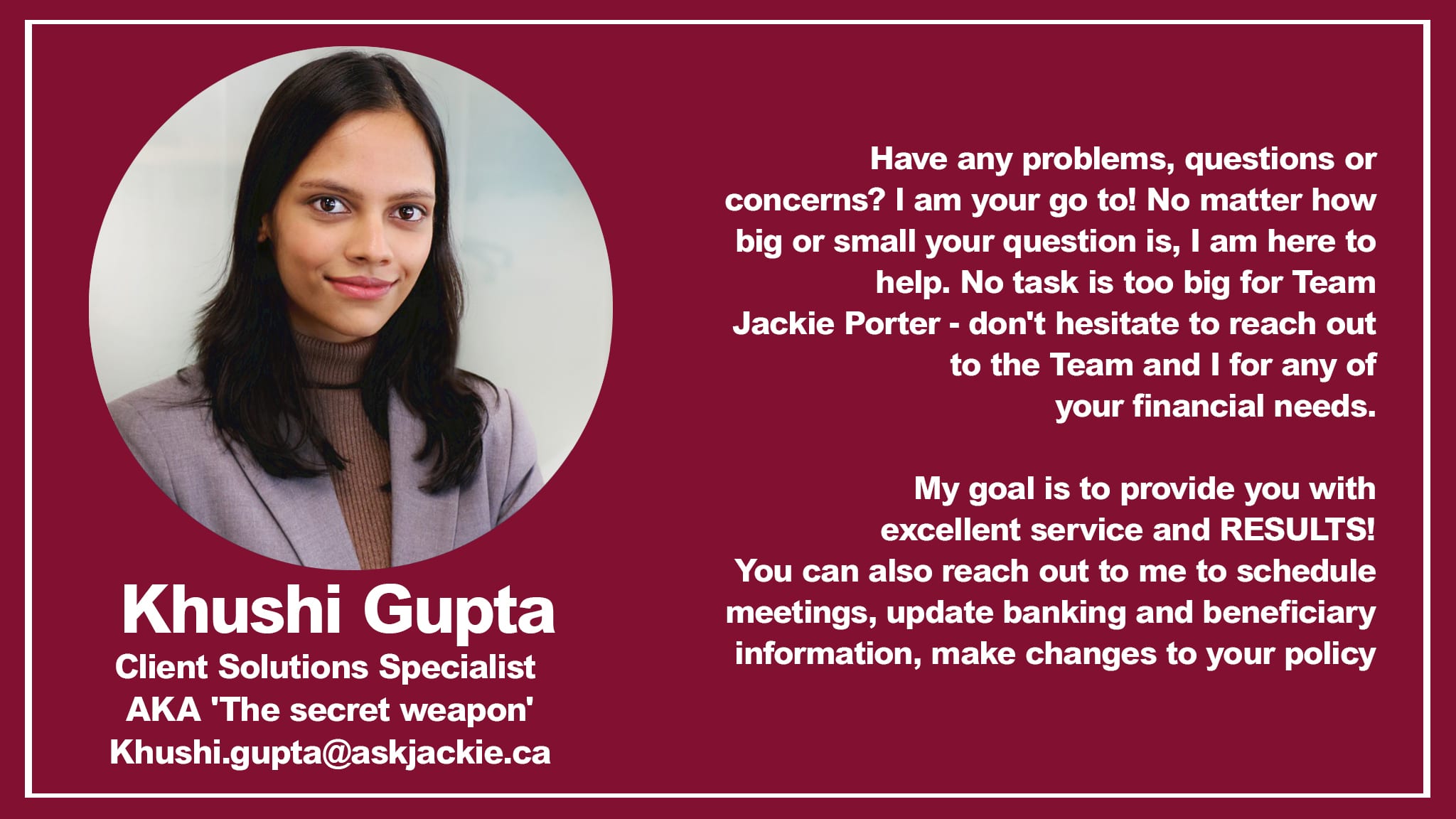 I am very satisfied and grateful to work with Jackie and highly recommend her!